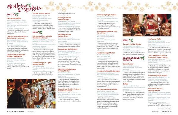 When: December 21, 11 a. m. to 3 p. m. Where: Live Casino Pittsburgh, 5260 US-30, Greensburg For more info: greensburgnightmarket. com