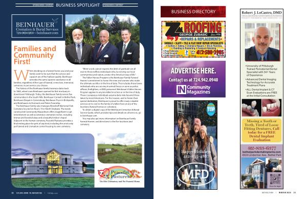 The history of the Beinhauer family business dates back to 1860, when Louis Beinhauer opened his first mortuary in downtown Pittsburgh. Today, the Beinhauer family serves five communities in the South Hills: Beinhauer-Connell in Bethel Park, Beinhauer-Bogan in Canonsburg, Beinhauer-Fryer in Bridgeville, and Beinhauers in Dormont and Peters Township.
