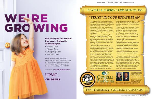 Attorney Natalie Piscione is a member of the National Academy of Elder Law Attorneys, and has been providing Estate Planning and Estate Administration legal services for nine years. The team of attorneys at Covelli & Piscione Law Offices is experienced in several areas of the law. For more information, call 412.653.5000 or visit covellilaw. com.