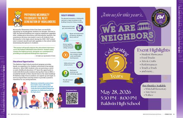 McAnnulty Elementary School has been successfully educating our kindergarten students for decades. Erected in 1955, the beloved building now requires significant upgrades. After collaborative discussion with McAnnulty teachers, the unanimous decision was made to move all students from McAnnulty to the high school during the 2026 – 2027 school year to ensure smooth and safe upgrades to the school while minimizing disruptions to students.