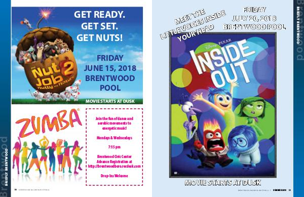 FRIDAY THE T JULY 20, 2018 INSIDE EE M ICES BRENTWOOD POOL O V LE HEAD T R T LI YOU MOVIE STARTS AT DUSK brentwood-baldwin-whitehall ❘ sUMMER 2018 59