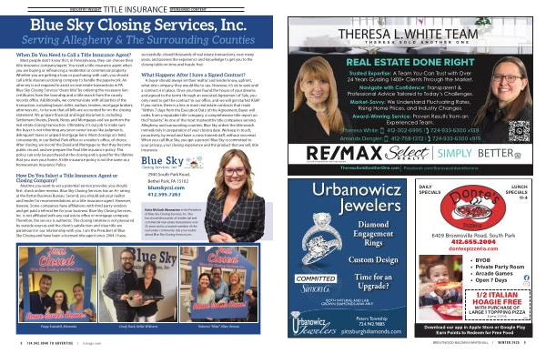 Most people don’ t know that, in Pennsylvania, they can choose their title insurance company / agent. You need a title insurance agent when you are buying or refinancing a residential or commercial property. Whether you are getting a loan or purchasing with cash, you should call a title insurance / closing company to handle the paperwork. An attorney is not required to assist on real estate transactions in PA. Blue Sky Closing Services“ clears title” by ordering the necessary lien certificates from the township and a title search from the county records office. Additionally, we communicate with all parties of the transaction, including buyer, seller, realtors, lenders, mortgage brokers, attorneys etc., to be sure that all bills are accounted for on the closing statement. We prepare financial and legal documents, including Settlement Sheets, Deeds, Notes and Mortgages and we perform the real estate closing transaction. Ultimately, it’ s our job to make sure the buyer is not inheriting any prior owner issues like judgments, delinquent taxes or unpaid mortgage liens. Most closings are held, conveniently, in our Bethel Park office or a realtor’ s office, of choice. After closing, we record the Deed and Mortgage so that they become public record, and we prepare the final title insurance policy. This policy can only be purchased at the closing and is good for the lifetime that you own your home. A title insurance policy is not the same as a homeowners Insurance Policy.