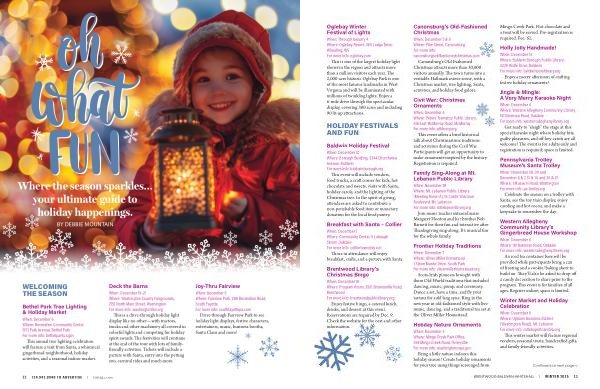 When: December 5 & 6 Where: Pike Street, Canonsburg For more info: canonsburgsoldfashionedchristmas. com Canonsburg’ s Old-Fashioned Christmas attracts more than 30,000 visitors annually. The town turns into a veritable Hallmark movie scene, with a Christmas market, tree lighting, Santa, activities, and holiday food galore.