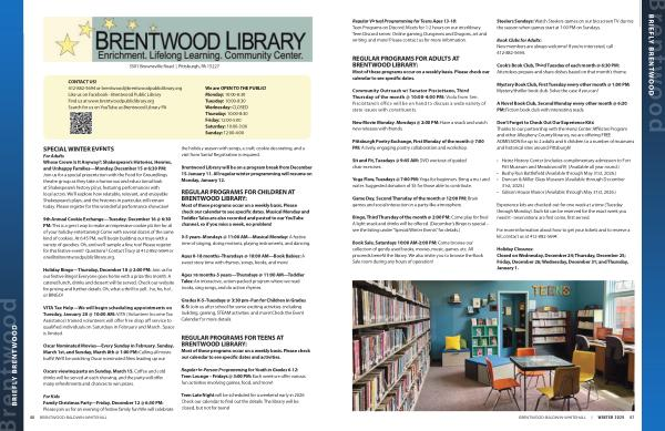 Book Clubs for Adults: New members are always welcome! If you’ re interested, call 412-882-5694.