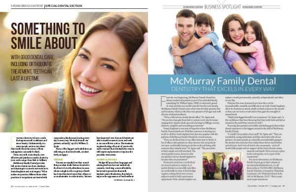 McMurray Family Dental provides full service dental care from checkups and cleanings to cosmetic restorations to dental implants and oral surgery.“ What makes our practice different from other practices is our patients are treated with compassion, kindness and caring every day in every way. We truly treat all our patients as family,” says Dr. William Z. Spatz.