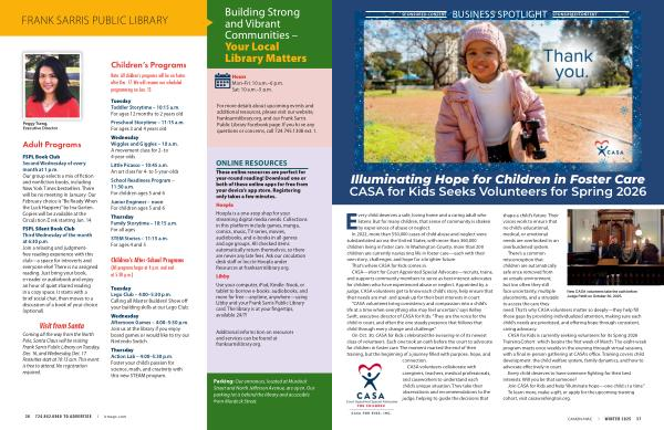 For more details about upcoming events and additional resources, please visit our website, franksarrislibrary. org, and our Frank Sarris Public Library Facebook page. If you have any questions or concerns, call 724.745.1308 ext. 1.
