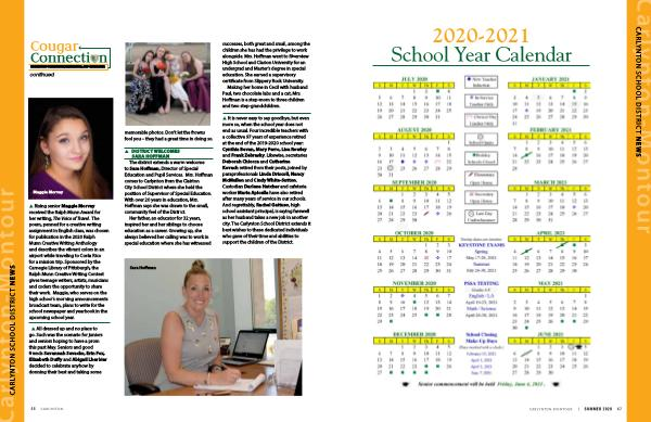 2020-2021 School Year Calendar 2020-2021 School Year Calendar arlynton-Montour CARLYNTON SCHOOL DISTRICT NEWS CARLYNTON-MONTOUR ❘ SUMMER 2020 47