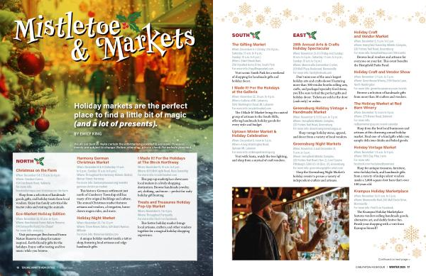 Visit scenic South Park for a weekend of shopping for handmade gifts and holiday decor.