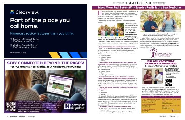 Healthy bones and joints are essential not only for lifespan— how long you live— but also for health span— how well you live. This article is the second in a two-part series on simple lifestyle changes that build bone and joint health. To read Part 1,“ Food is Medicine,” visit https:// tinyurl. com / 34atzvvj.