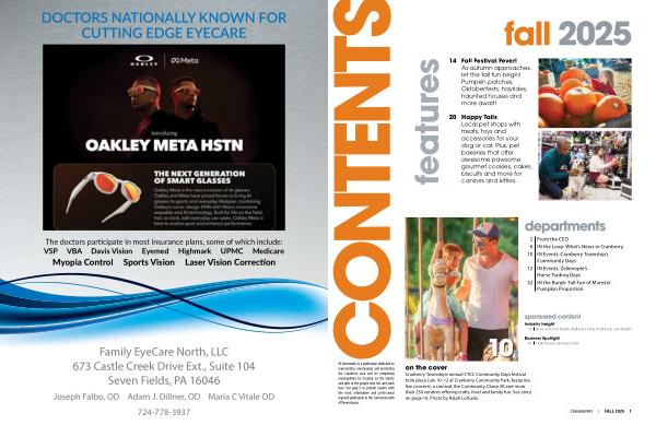 Cranberry Township’ s annual CTCC Community Days festival took place July 10 – 12 at Cranberry Community Park, featuring live concerts, a carnival, the Community Chase 5K and more than 250 vendors offering crafts, food and family fun. See story on page 10. Photo by Ralph LoVuolo. fall 2025