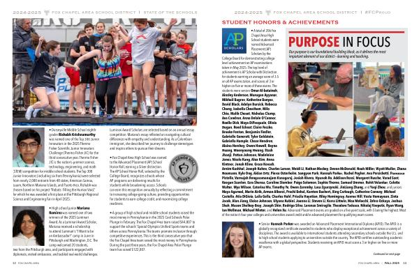 2024-2025 FOX CHAPEL AREA SCHOOL DISTRICT STATE OF THE SCHOOLS