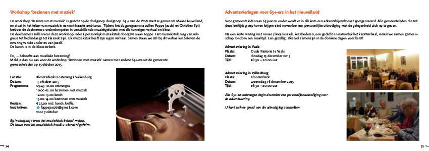 Voor gemeenteleden van 65 jaar en ouder wordt er in elk kern een adventsbijeenkomst georganiseerd. Alle gemeenteleden die tot