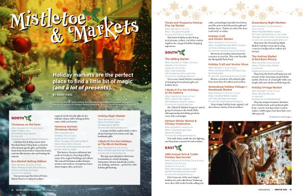 Visit scenic South Park for a weekend of shopping for handmade gifts and holiday decor.