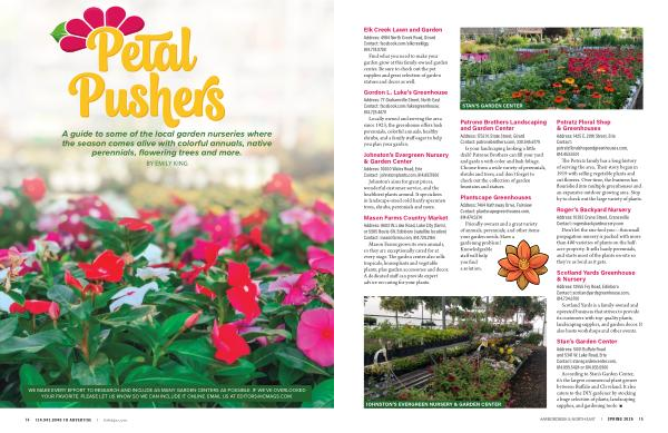 WE MAKE EVERY EFFORT TO RESEARCH AND INCLUDE AS MANY GARDEN CENTERS AS POSSIBLE. IF WE’ VE OVERLOOKED YOUR FAVORITE, PLEASE LET US KNOW SO WE CAN INCLUDE IT ONLINE. EMAIL US AT EDITORS @ ICMAGS. COM.