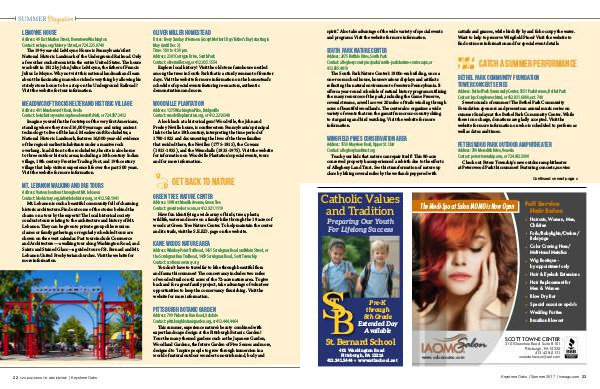 You don’ t have to travel far to hike through beautiful flora and fauna this summer! The conservancy includes two miles of wooded trails on 42 acres of the 72‐acre nature area. To give back and for a great family project, take advantage of volunteer opportunities to keep the conservancy flourishing. Visit the website for more information.
