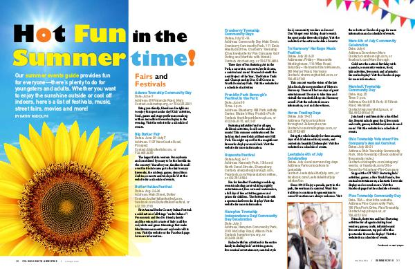 Adams Township Community Day Date: June 9 Address: 698 Valencia Road, Mars Contact: adamstwp. org, or 724.625.2221 Bring your family, friends and neighbors to enjoy this spectacular day! Kids’ activities, food, games and stage performances along with an incredible fireworks display in the evening. Visit the website for a schedule of events.