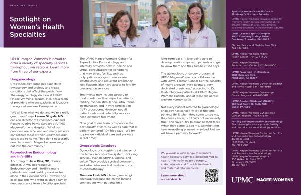 UPMC Magee-Womens provides specialty women’ s health services throughout the greater Pittsburgh area, including the following locations in the northern suburbs: