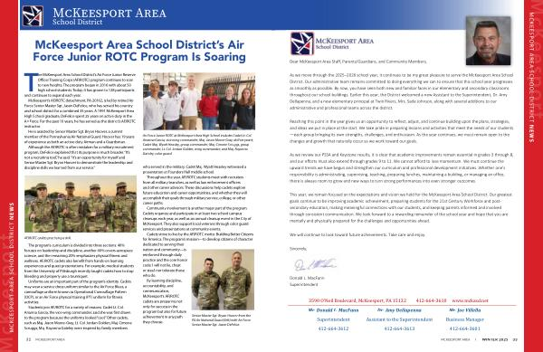 The McKeesport Area School District’ s Air Force Junior Reserve Officer Training Corps( AFJROTC) program continues to soar to new heights. The program began in 2016 with about 50 high school students. Today, it has grown to 128 participants and continues to expand each year.