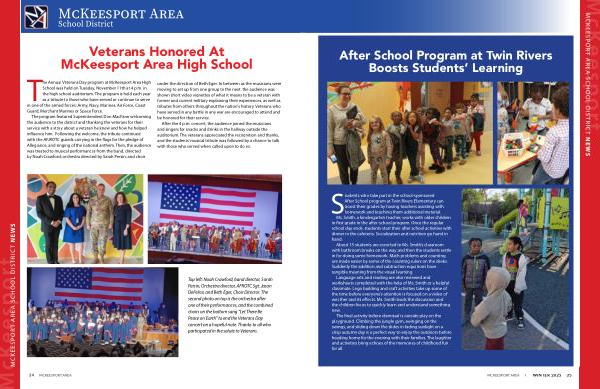 The Annual Veterans Day program at McKeesport Area High School was held on Tuesday, November 11th at 4 p. m. in the high school auditorium. The program is held each year as a tribute to those who have served or continue to serve in one of the armed forces: Army, Navy, Marines, Air Force, Coast Guard, Merchant Marines or Space Force.
