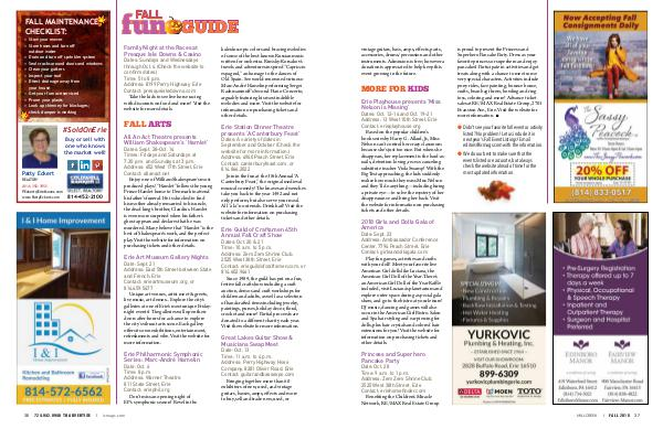 Erie Art Museum Gallery Nights Date: Sept. 21 Address: East 5th Street between State and French, Erie Contact: erieartmuseum. org, or 814.459.5477