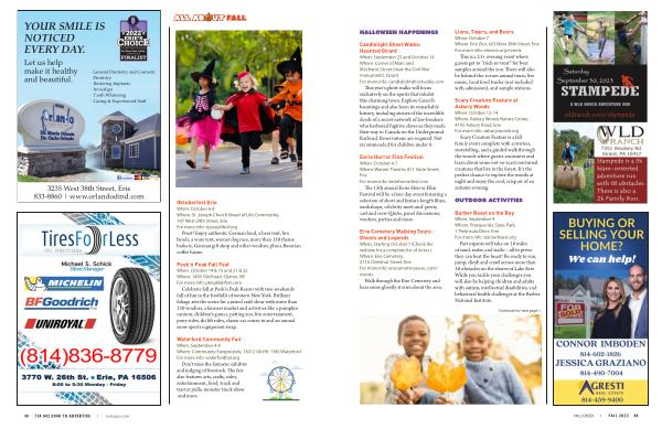 Erie Cemetery Walking Tours : Ghosts and Legends When : Starting October 7 ( Check the website for a complete list of dates .) Where : Erie Cemetery , 2116 Chestnut Street , Erie For more info : eriecemeteryassoc . com / events