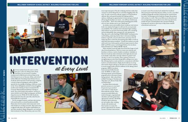 Not every student learns the same or at the same pace as the one sitting next to them . Sometimes , for one reason or another , students need a little boost to elevate them to the level their peers are on . Because of this , each school within Millcreek Township School District has an Academic Interventionist . Each has had to complete a variety of special trainings in order to fill this special role successfully , including a 100-hour course in the Orton-Gillingham method to help struggling readers and a training on how to incorporate the Concrete-Representational Abstract strategy in math . They work closely with students ’ teachers to assess student needs , bridge learning gaps , and foster long-term success . While all 10 of the Academic Interventionists share the same title , what they do looks different at each level .