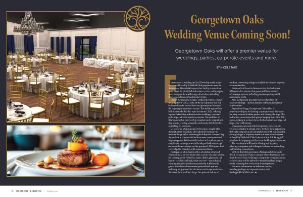 Georgetown Oaks is poised to become a sought-after destination for weddings . The ballroom ’ s modern yet timeless design offers a stunning backdrop for a couple ’ s big day and can accommodate both intimate ceremonies and large receptions . With versatile indoor and outdoor spaces , couples can exchange vows in the elegant ballroom or opt for an outdoor ceremony on the spacious 1,280-square-foot covered patio , complete with a manicured lawn .