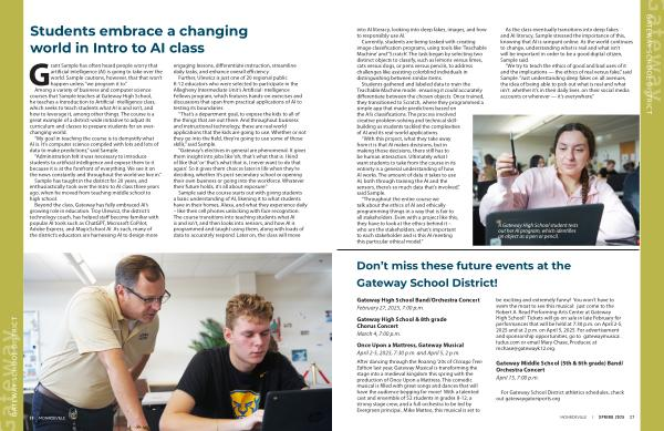 Students gathered and labeled data to train the Teachable Machine model , ensuring it could accurately differentiate between the chosen objects . Once trained , they transitioned to Scratch , where they programmed a simple app that made predictions based on the AI ’ s classifications . The process involved creative problem-solving and technical skillbuilding as students tackled the complexities of AI and its real-world applications .