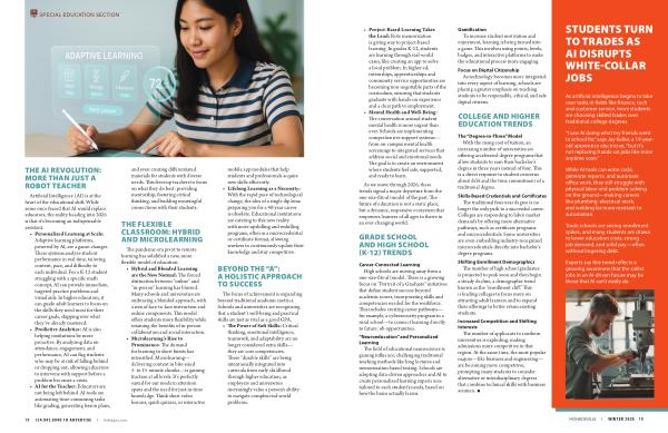 Career-Connected Learning High schools are moving away from a one-size-fits-all model. There is a growing focus on“ Portrait of a Graduate” initiatives that define student success beyond academic scores, incorporating skills and competencies needed for the workforce. This includes creating career pathways— for example, a cybersecurity program in a rural school— to connect learning directly to future job opportunities.