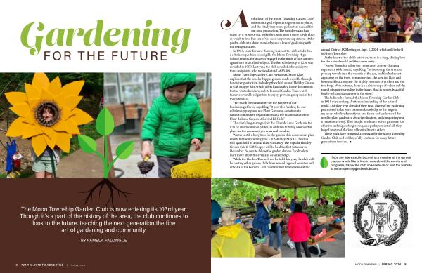 The Moon Township Garden Club is now entering its 103rd year . Though it ’ s a part of the history of the area , the club continues to look to the future , teaching the next generation the fine art of gardening and community .
