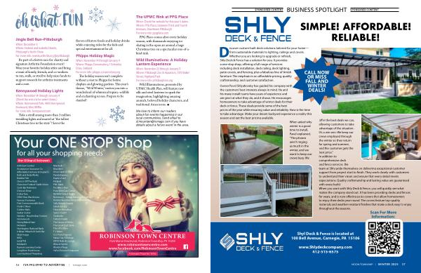 When: November 14 through January 4( Check the website for select dates.) Where: Kennywood Park, 4800 Kennywood Boulevard, West Mifflin For more info: kennywood. com