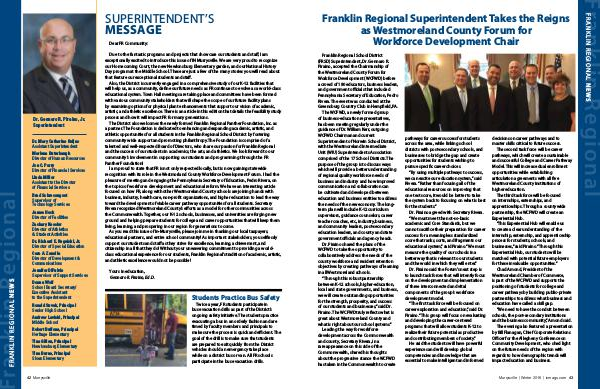 Franklin Regional School District( FRSD) Superintendent, Dr. Gennaro R. Piraino, accepted the Chairmanship of the Westmoreland County Forum for Workforce Development( WCFWD) before a crowd of 180 educators, business leaders, and government officials that included Pennsylvania Secretary of Education, Pedro Rivera. The event was conducted at the Greensburg Country Club in Hempfield, PA.