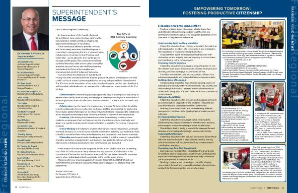Teaching children about citizenship helps to shape their understanding of society , responsibility , and their role in a community . Franklin Regional seeks to support students in seven core areas as they develop and mature :