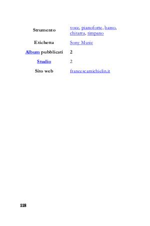 Strumento voce, pianoforte, basso, chitarra, timpano Etichetta Sony Music Album pubblicati 2 Studio 2 Sito web 118 francescamichielin.it