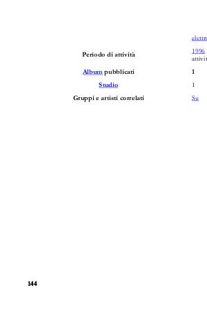 elettro 144 Periodo di attività 1996 – attivit Album pubblicati 1 Studio 1 Gruppi e artisti correlati Su