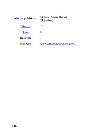 Album pubblicati 150 13 (con i Matia Bazar) 21 (solista) Studio 12 Live 8 Raccolte 1 Sito web www.antonellaruggiero.com/