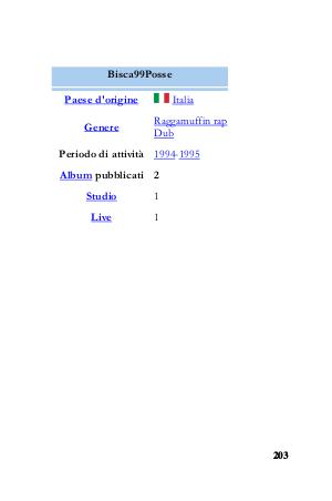 Bisca99Posse Italia Paese d'origine Genere Raggamuffin rap Dub Periodo di attività 1994-1995 Album pubblicati 2 Studio 1 Live 1 203