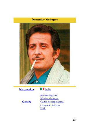 Domenico Modugno Nazionalità Genere Italia Musica leggera Musica d'autore Canzone napoletana Canzone siciliana Folk 73