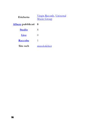 Etichetta Virgin Records, Universal Music Group Album pubblicati 8 86 Studio 8 Live 0 Raccolte 1 Sito web niccolofabi.it