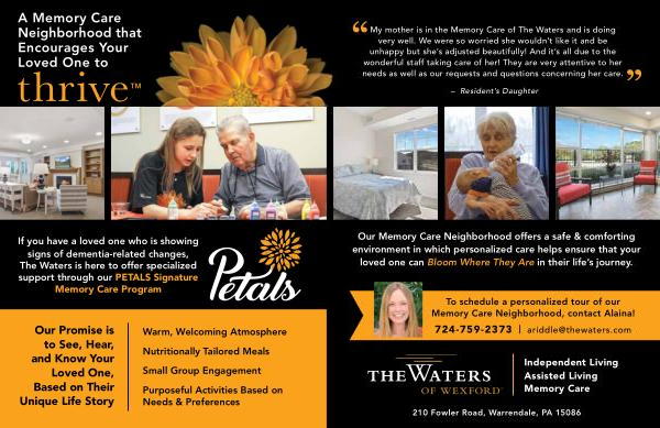 If you have a loved one who is showing signs of dementia-related changes , The Waters is here to offer specialized support through our PETALS Signature Memory Care Program