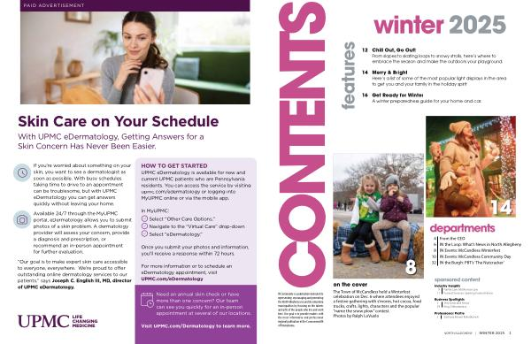4 From the CEO 6 IN the Loop: What’ s News in North Allegheny 8 IN Events: McCandless Winterfest 10 IN Events: McCandless Community Day 32 IN the Burgh: PBT’ s‘ The Nutcracker’