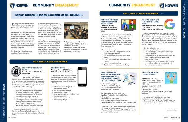 The District is partnering with the North Huntingdon Township Police Department to provide this course . A device is not required for this course . iPHONE FOR SENIORS Thursday , October 27 , 2022 from 3:30-5:30pm , Norwin High School