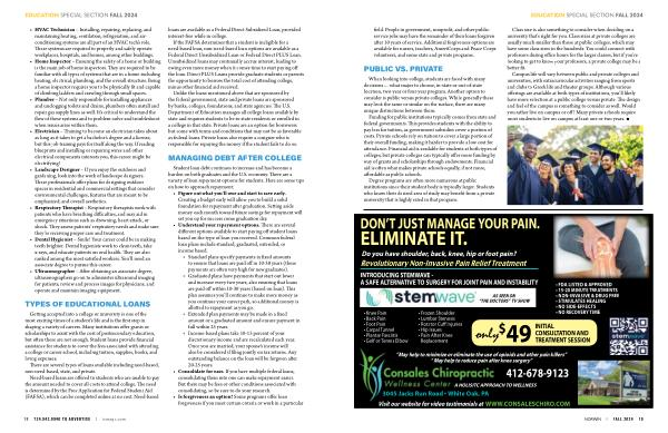 EDUCATION SPECIAL SECTION FALL 2024 field . People in government , nonprofit , and other publicservice jobs may have the remainder of their loans forgiven after 10 years of service . Additional forgiveness options are available for nurses , teachers , AmeriCorps and Peace Corps volunteers , and some state and private programs .