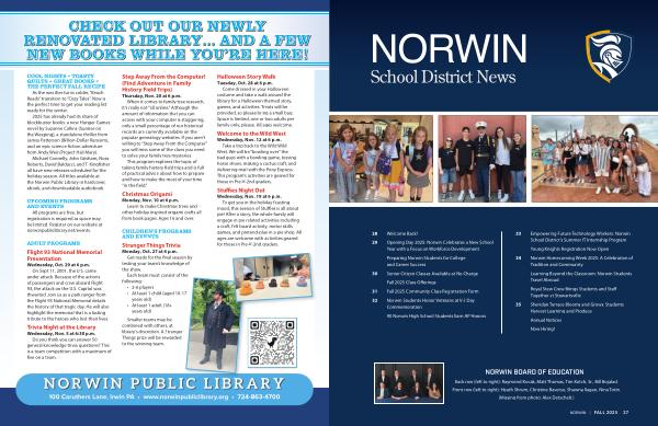 All programs are free, but registration is required as space may be limited. Register on our website at norwinpubliclibrary. net / events.