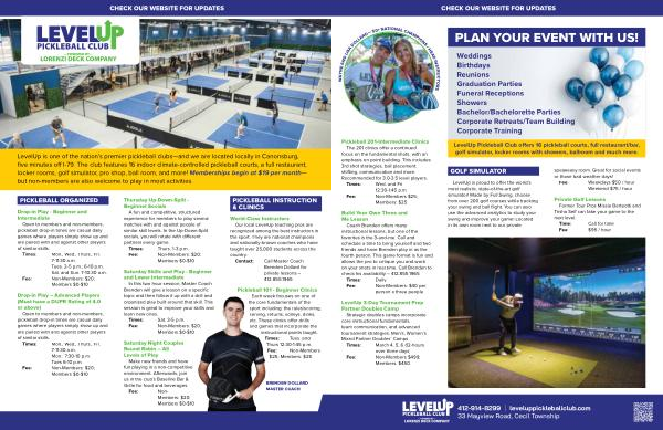 412-914-8299 | leveluppickleballclub. com 33 Mayview Road, Cecil Township