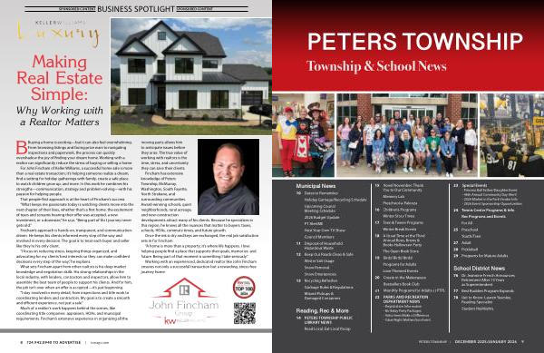 Fincham has extensive knowledge of Peters Township, McMurray, Washington, South Fayette, North Strabane, and surrounding communities. Award-winning schools, quiet neighborhoods, rural acreage, and new-construction developments attract many of his clients. Because he specializes in this region, he knows all the nuances that matter to buyers: taxes, schools, HOAs, commute times, and future growth.