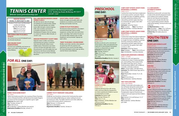 PETERS TOWNSHIP PARKS AND RECREATION NEWS