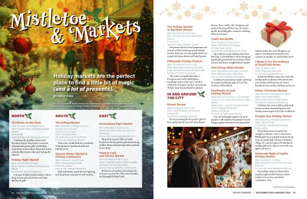 When: December 6 & 7, 11 a. m. to 4 p. m. Where: Freedom Farms, 434 Overbrook Road, Valencia For more info: freedomfarmspa. com / christmas-on-the-farm Celebrate the holiday season with Freedom Farms! Shop from a selection of handmade goods, gifts, and holiday treats from local vendors. Enjoy fun family activities like tractor rides and visiting the animals.