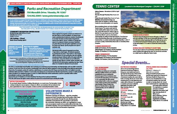 PETERS TOWNSHIP PARKS & RECREATION NEWS