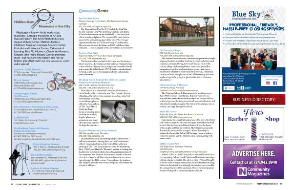 Pittsburgh is known for its world-class museums — Carnegie Museums of Art and Natural History , The Andy Warhol Museum , August Wilson Center , Mattress Factory , Children ’ s Museum , Carnegie Science Center , Frick Art and Historical Center , Cathedral of Learning , Fort Pitt Museum , Clemente Museum , Senator John Heinz History Center and many more — but here are nine hidden and not-sohidden gems that make our city ’ s museum scene extra special !